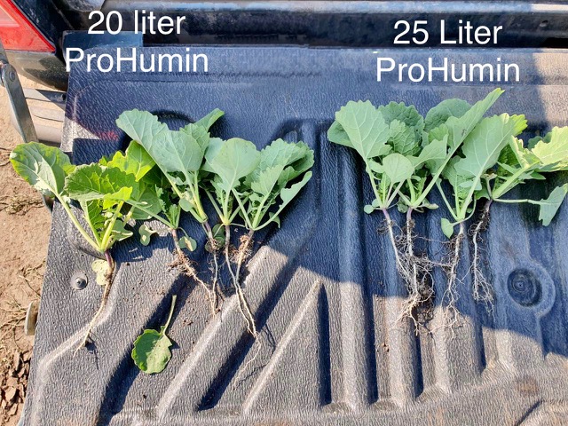Vetés előtt Prohumint a talajba juttatni olyan mintha szerves trágyát juttatnánk ki, viszont azzal szemben azonnali hatásokat érünk el. Gyorsabban csíráznak a magok, erőteljesen és egységesen kelő növényeket kapunk. Nagyobb, erőteljesebb és mélyebbre hatoló gyökérzete lesz a növényeknek, ezáltal megnő a stressztűrés. A nagyobb gyökértömeg több tápanyagot képes felvenni és megnő a gyökér tápanyag raktározási kapacitása amely stressz esetén felértékelődik.